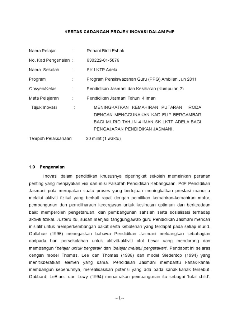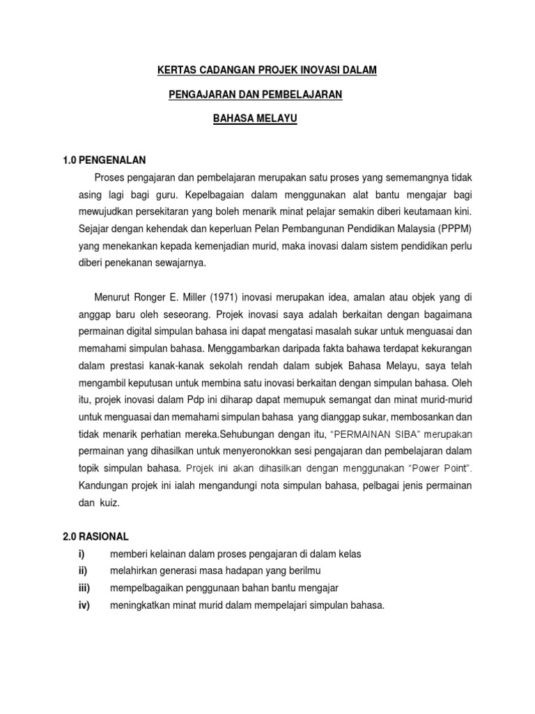 Kertas Cadangan Projek Inovasi Dalam Pdp Pdf